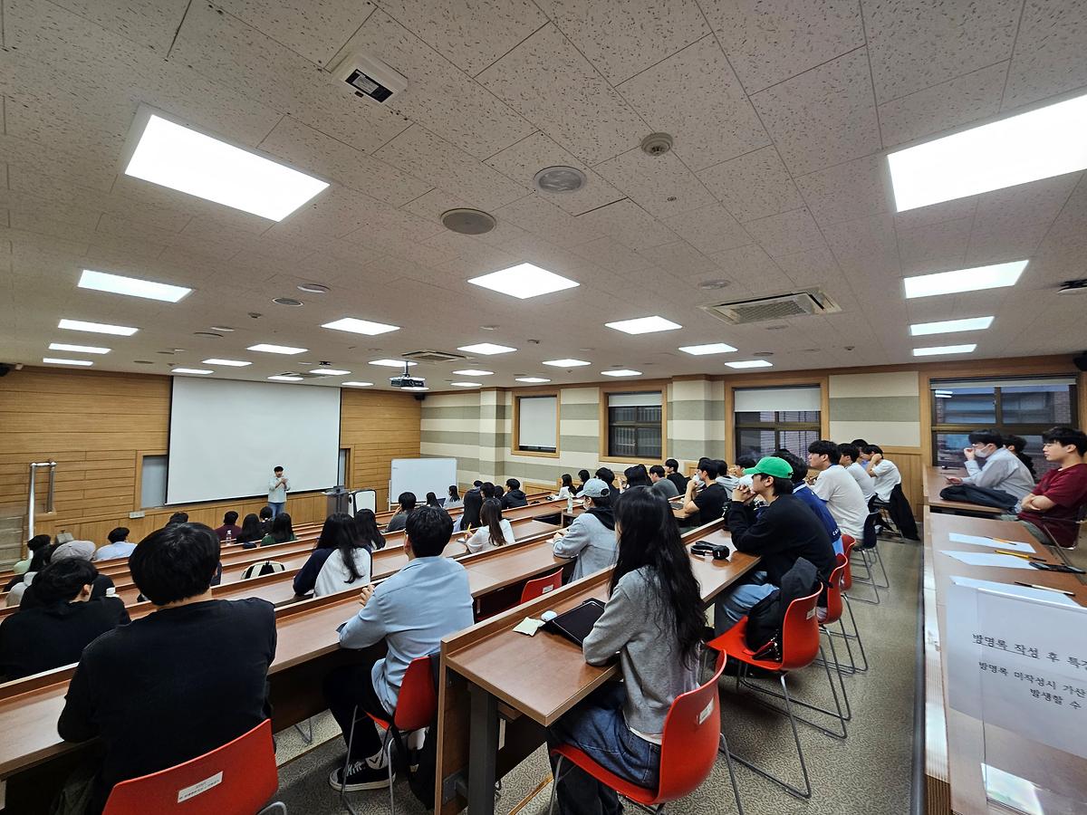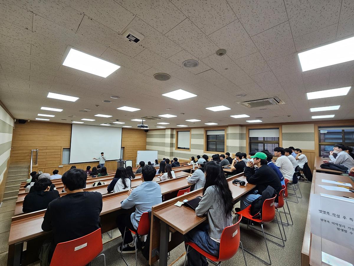 본 특강에서는 NEVER Cloud에 근무하는 김성훈 매니저의 '문과 출신의 IT회사에서 살아남는 법'이라는 주제로 강의를 진행 하였습니다. 약 60명의 학생들이 참가하여 많은 관심을 가져주어 유익한 특강 시간이 되었습니다.