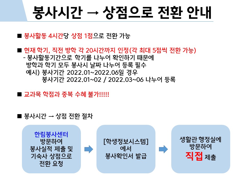 봉사활동시간 상점으로 전환 안내
