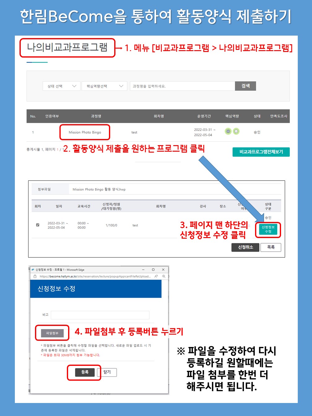 2. 한림BeCome을 통하여 활동양식 제출하기