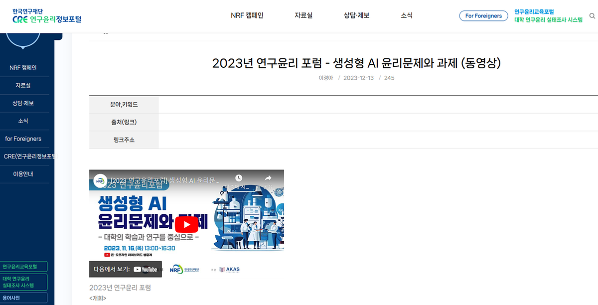 2023년 연구윤리 포럼 영상 공유