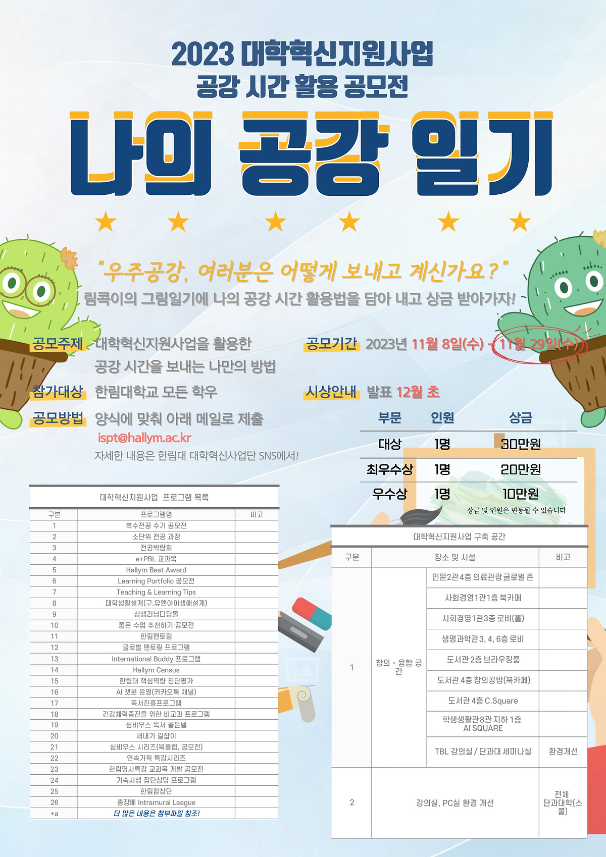 👉 대학혁신사업단 홈페이지: https://ispt.hallym.ac.kr/ispt/5.notice/ispt_notice.do?mode=view&articleNo=59208