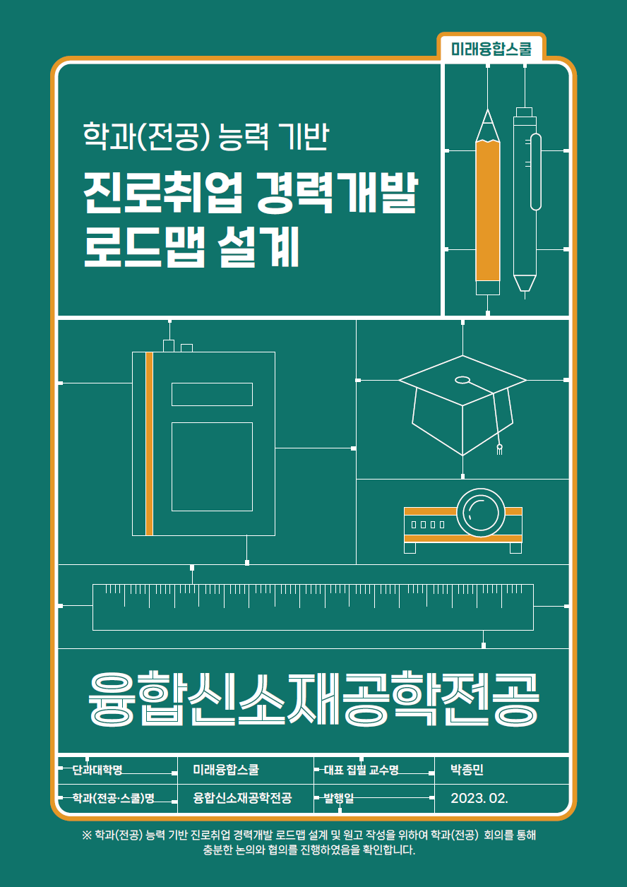 재학생과 예비 신입생의 융합신소재공학전공 탐색과 대학생활 설계, 진로·취업 준비를 지원하기 위한 진로취업 경력개발 로드맵을 설계하여 게시하오니 참고 바랍니다.